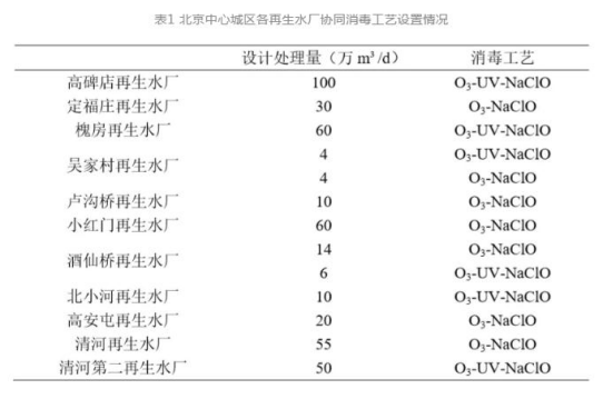1 北京城鎮再生水廠消毒工藝