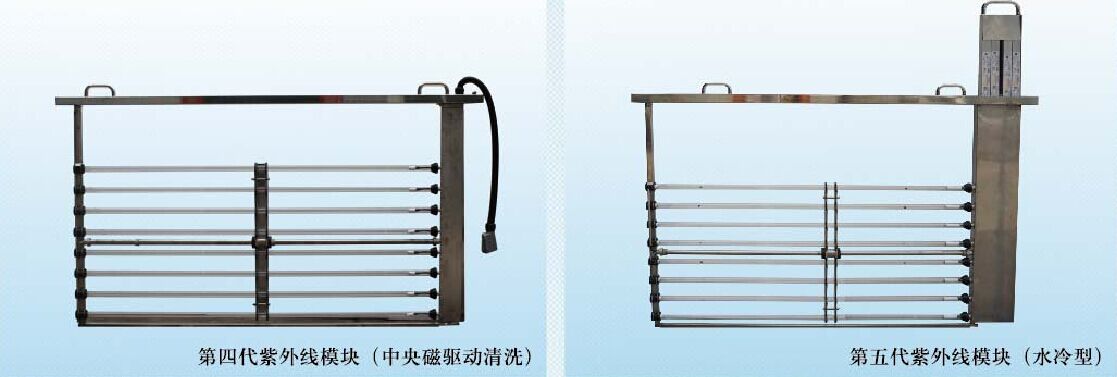 5)根據(jù)客戶處理水量、水質(zhì)及殺菌要求等不同情況,也提供每個模架3支到12支燈管的多種設計,模架標準設計為8支燈管。采用優(yōu)質(zhì)不銹鋼材料制造,電線電纜密封在清洗模塊內(nèi),且有獨特的固封技術,不會暴露在污水和紫外線中。