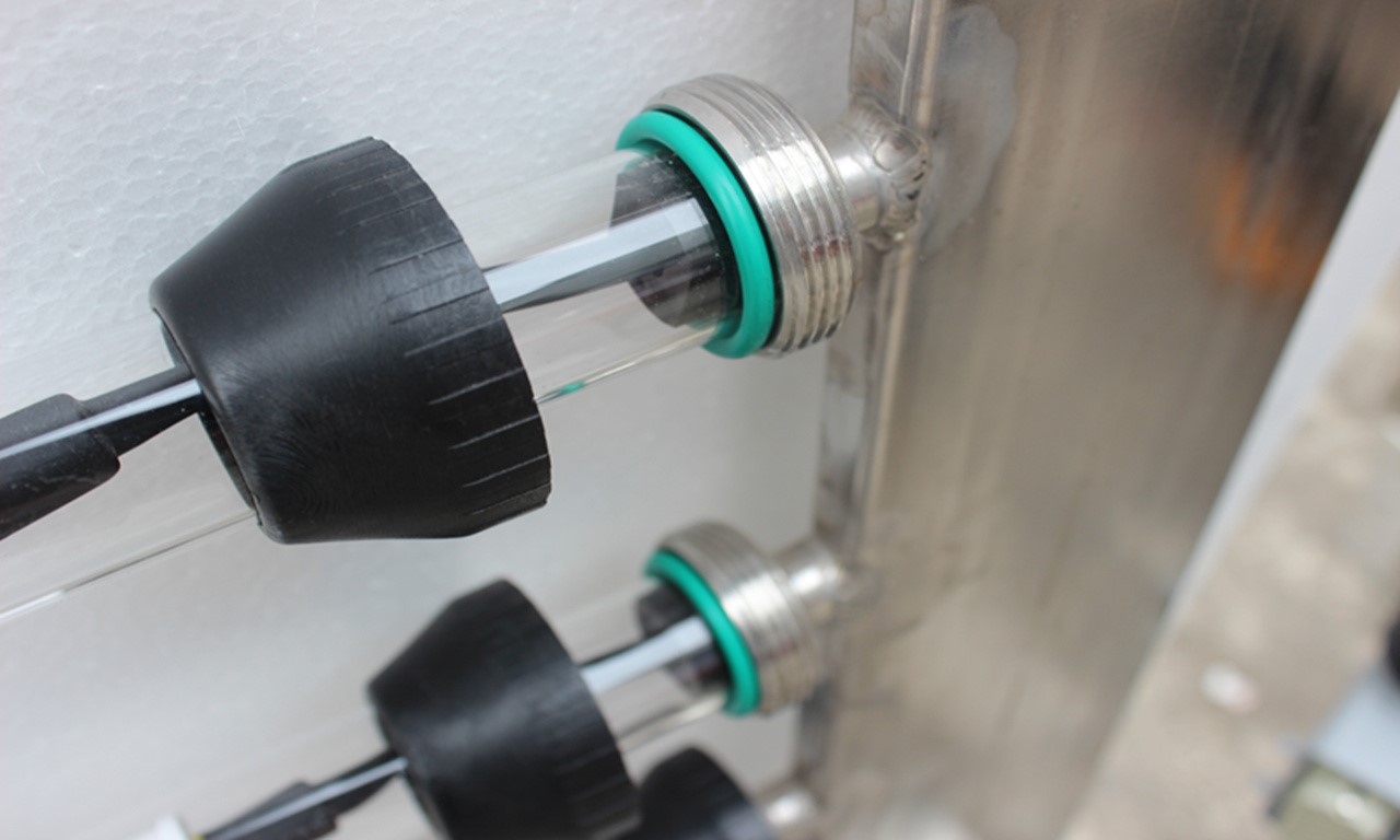 1)鎮(zhèn)流器自動水冷,鎮(zhèn)流器模塊盒與流動的冷水全封閉無接口接觸的設計,確保任何情況下,冷卻水不會進入鎮(zhèn)流器盒內(nèi)。紫外線燈管連接口處有四重密封設計。采用獨特的固化密封設計,在水壓大于6kg/cm2多次試驗無泄漏現(xiàn)象發(fā)生,密封等級遠大于IP68的級別;